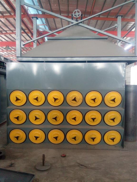 滤筒在除尘器中的布置很重要,既可以垂直布置在箱体花板上,也可以倾斜布置 在花板上,从清灰效果看,垂直布置较为合理。花板下部为过滤室,上部为气箱脉冲室。在除尘器入口处装有气流分布板。
