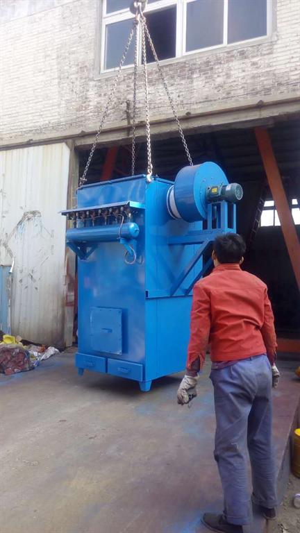卸料车单机除尘器 高度和长度尽可能紧凑,既消除扬尘,又不影响皮带机和卸料车维护。三台卸料车顶部除尘器风机考虑安装于除尘器侧面。