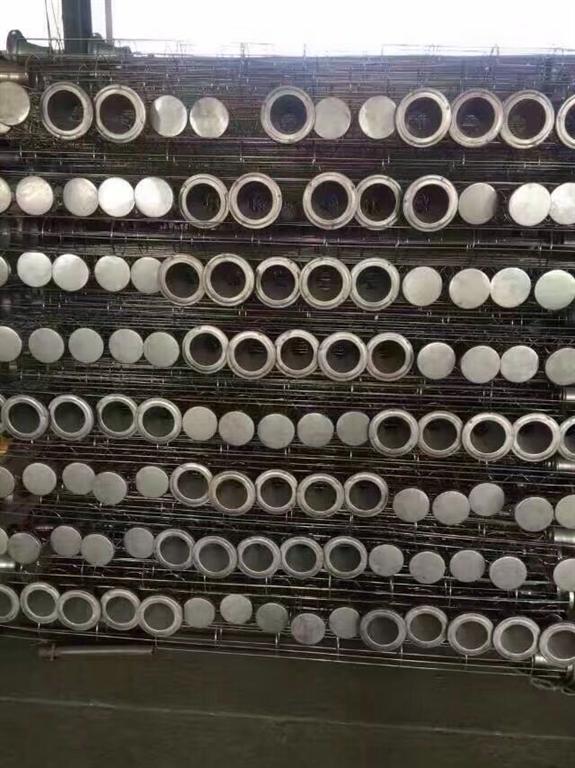 5、有机硅处理骨架镀层牢固耐腐,避免了除尘器工作一段时间后骨架表面锈蚀与滤袋黏结,使换袋顺利,同时减少了换袋过程中对布袋的损坏。